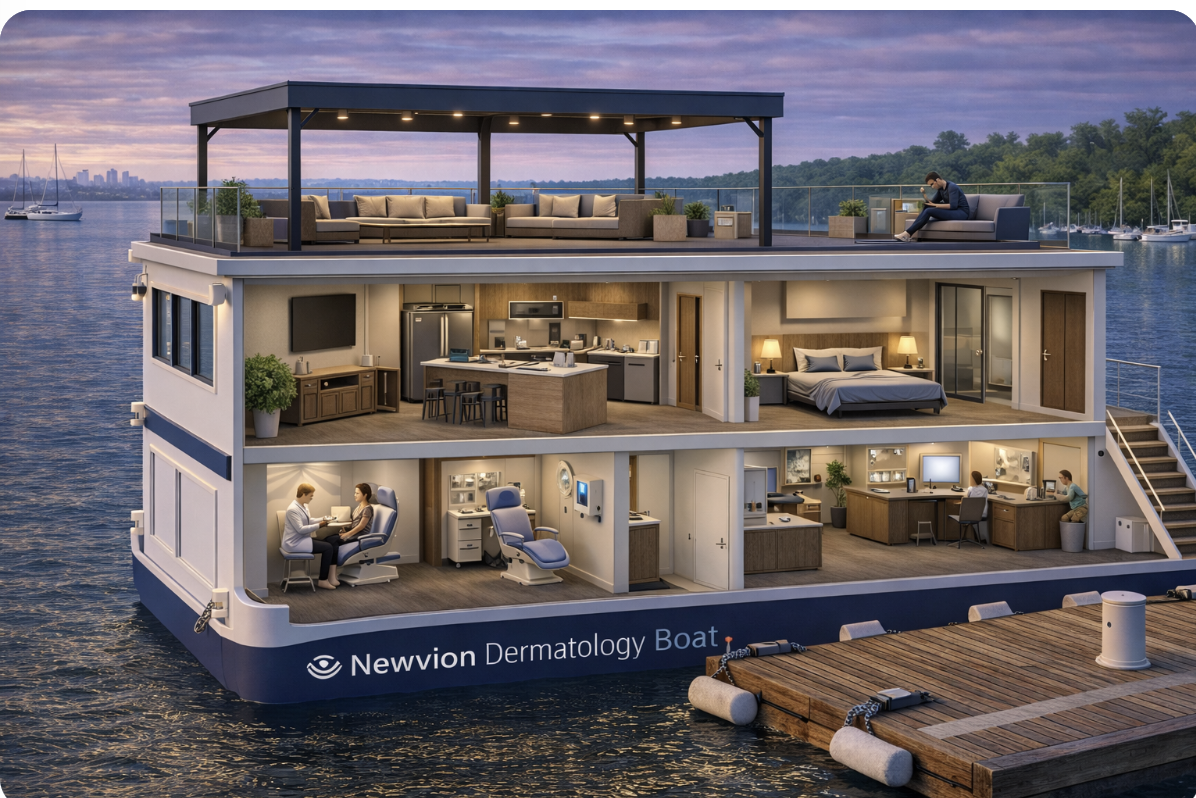 Floating healthcare solutions including dental, dermatology, pharmacy, and wellness clinics.